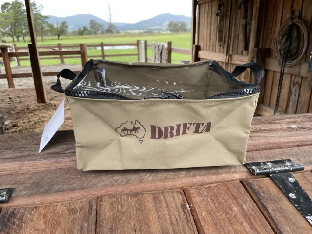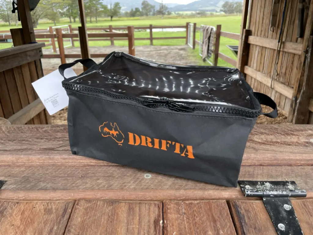 Previous Product Next Product Drifta Bridle Bag BUY NOW SKU: Drifta Bridle Bag Categories: Drifta Canvas Products, Utility Bags Tag: Bridle Bag Description Additional information DescriptionDimensions: 300 (L) x 250 (W) x 140 (H)Side grab handlesAustralian made on site at GloucesterFacebookTweetPinEmailAdditional informationWeight1 kgDimensions30 × 30 × 30 cmColourBlack, Green, Grey, Navy BlueRelated products Quick View Quick ViewDrifta Battery Tool BagMORE INFO Quick View Quick ViewDrifta Makita Tool BagMORE INFO Quick View Quick ViewDrifta Air Hose BagMORE INFO Quick View Quick ViewDrifta Milwaukee Tool BagMORE INFO