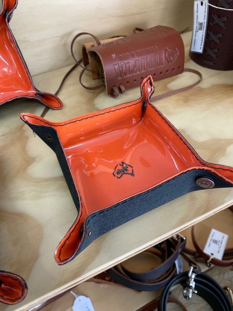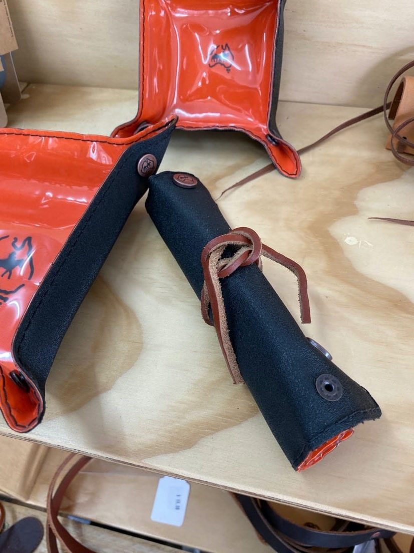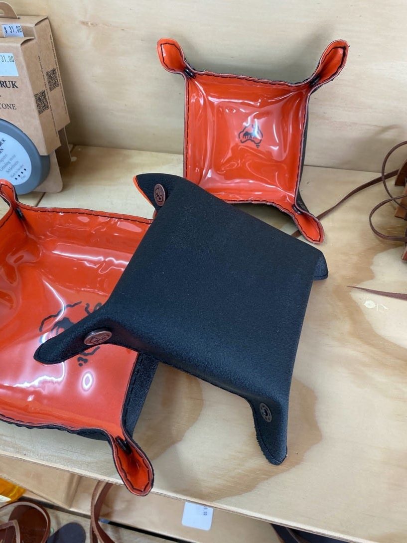 Drifta Canvas Tray. folds flat can roll up. can do any colour combination. standard is black and orange. Ideal for hundreds of uses, basically to put things in. coins, keys, at home, around camp, or travelling.
