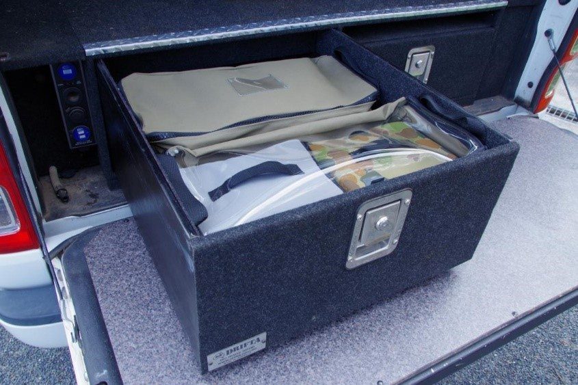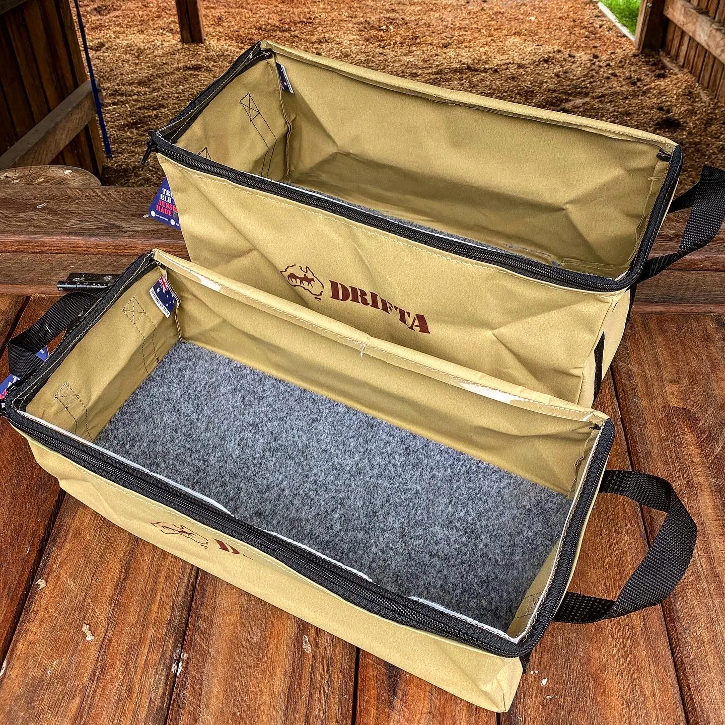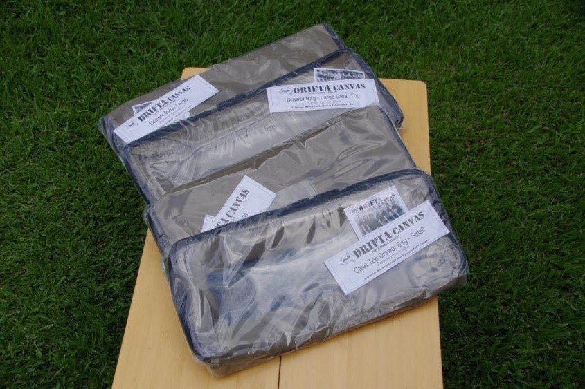 We made a bag that fits our standard drawer sizes. These drawer bags have a clear top so you can see what is in your bag. The medium and small toiletries bags are for display only, they are not a part of the drawer bags.