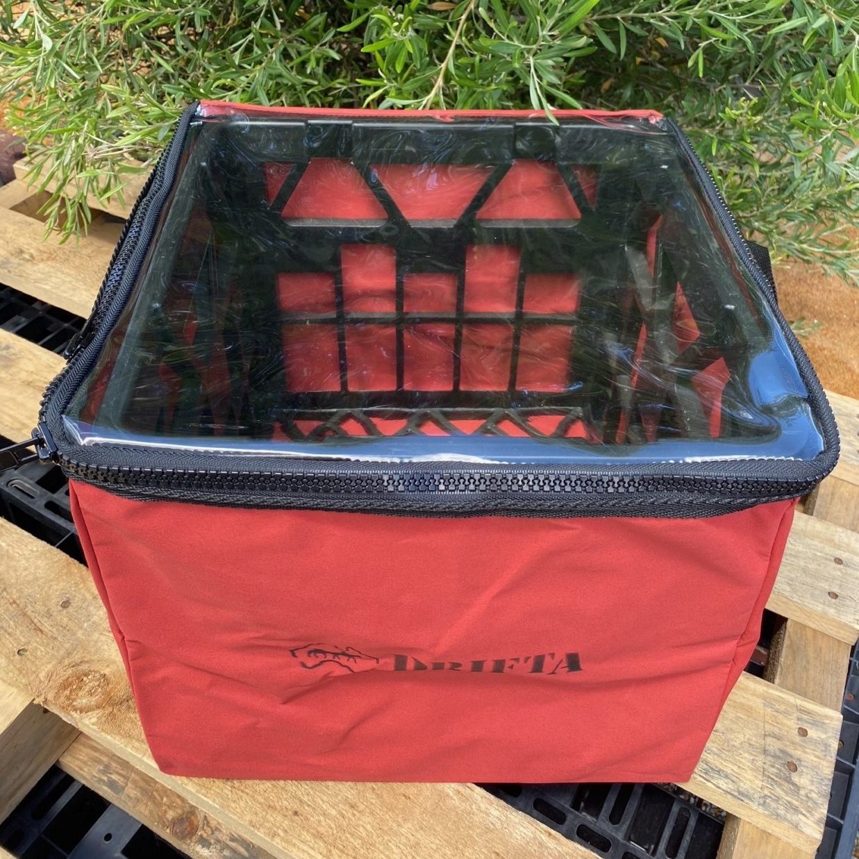 If you are planning to use multiple of these milkcrate bags the clear top might be ideal for you. Without opening you can see inside what is stored in your milkcrate. Fits a standard Aussie milk crate. Made in Gloucester, from quality Australian canvas.. lot of people using old milk crates to store things in, now you can keep it neat in a bag, ideal for the roof rack of a vehicle, or a trailer.