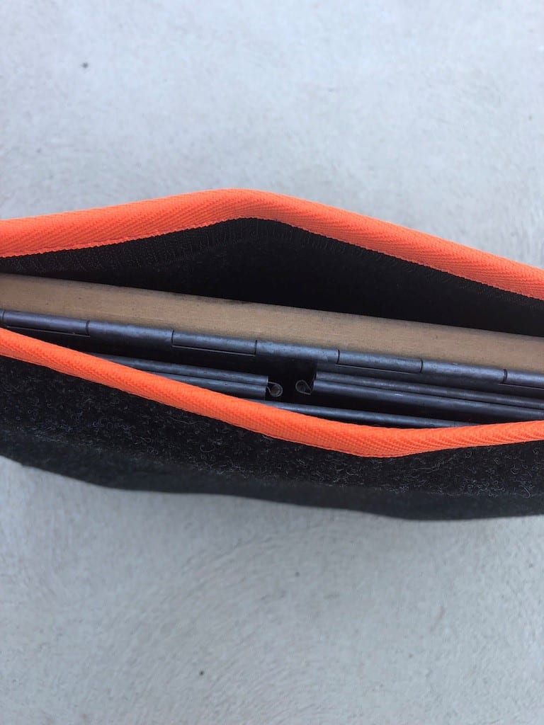 Velcro closing. Fits tight and stops the rattling.