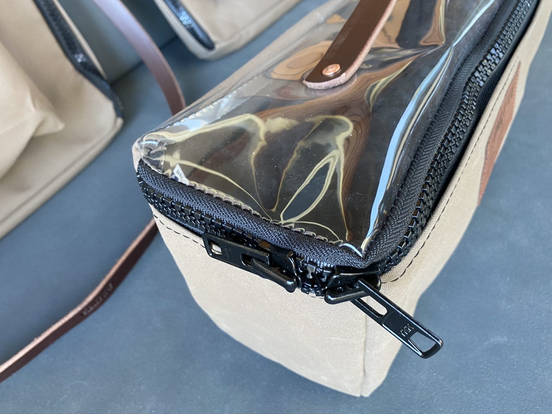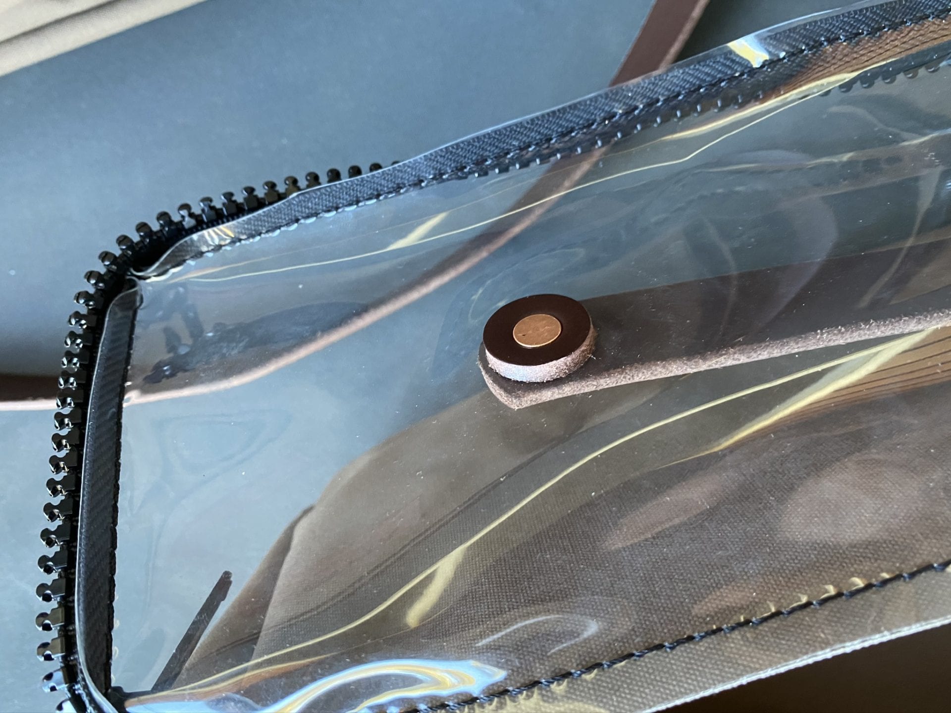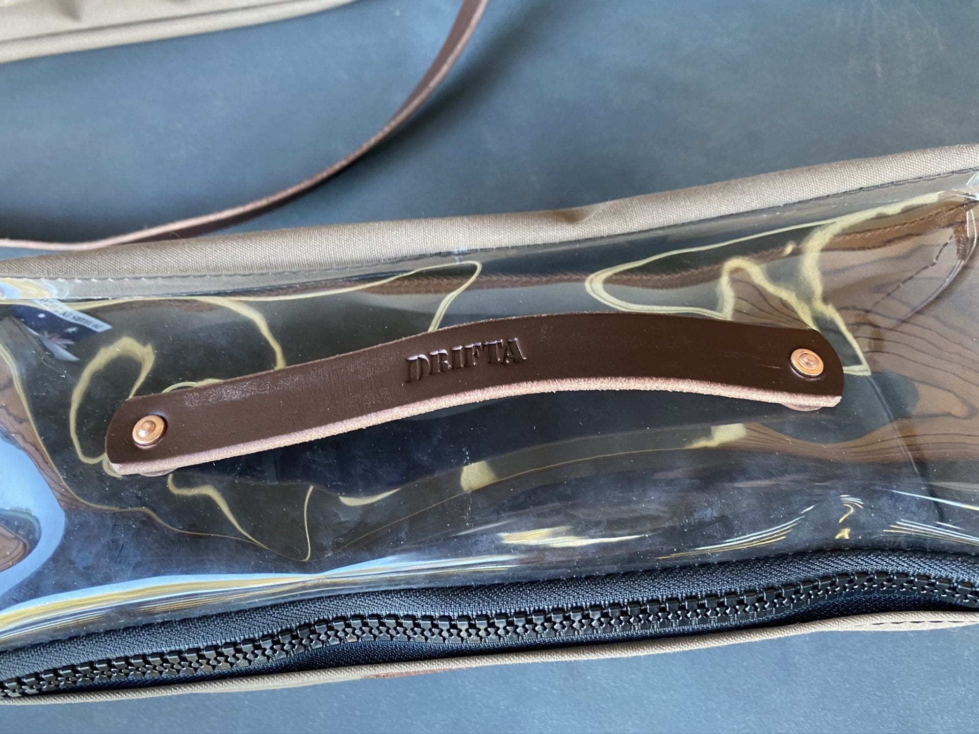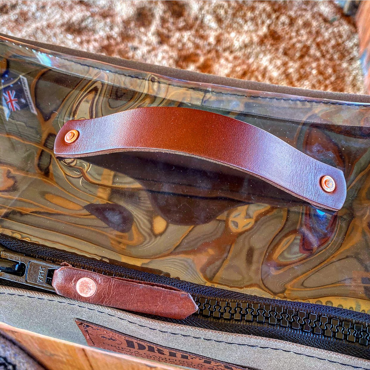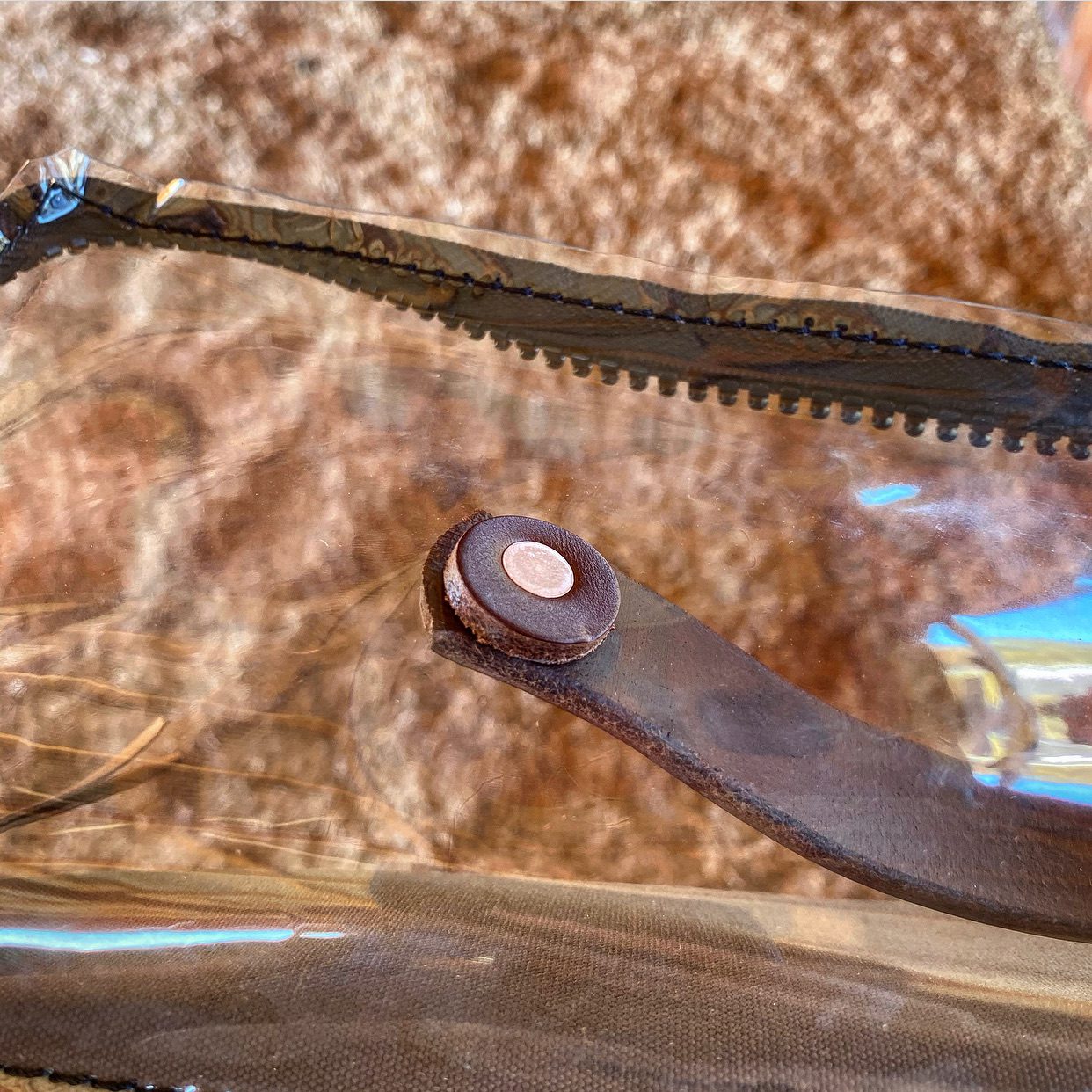 Front Leather tag. Copper rivets