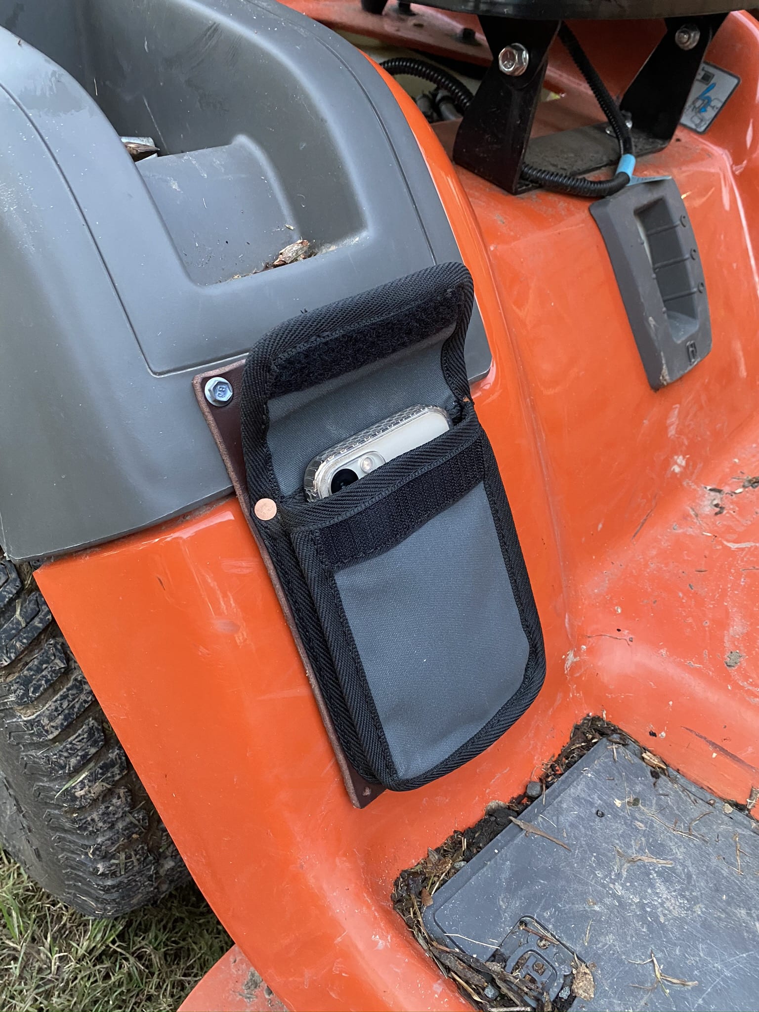 Great little pocket for your phone. Leather back for easy attachments.