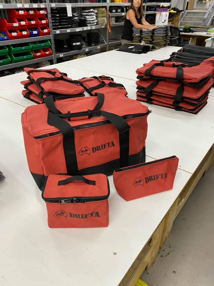 Made from quality Australian canvas, webbing and large ykk zips, in our Drifta factory Gloucester NSW.. now as a kit in outback RED colour.