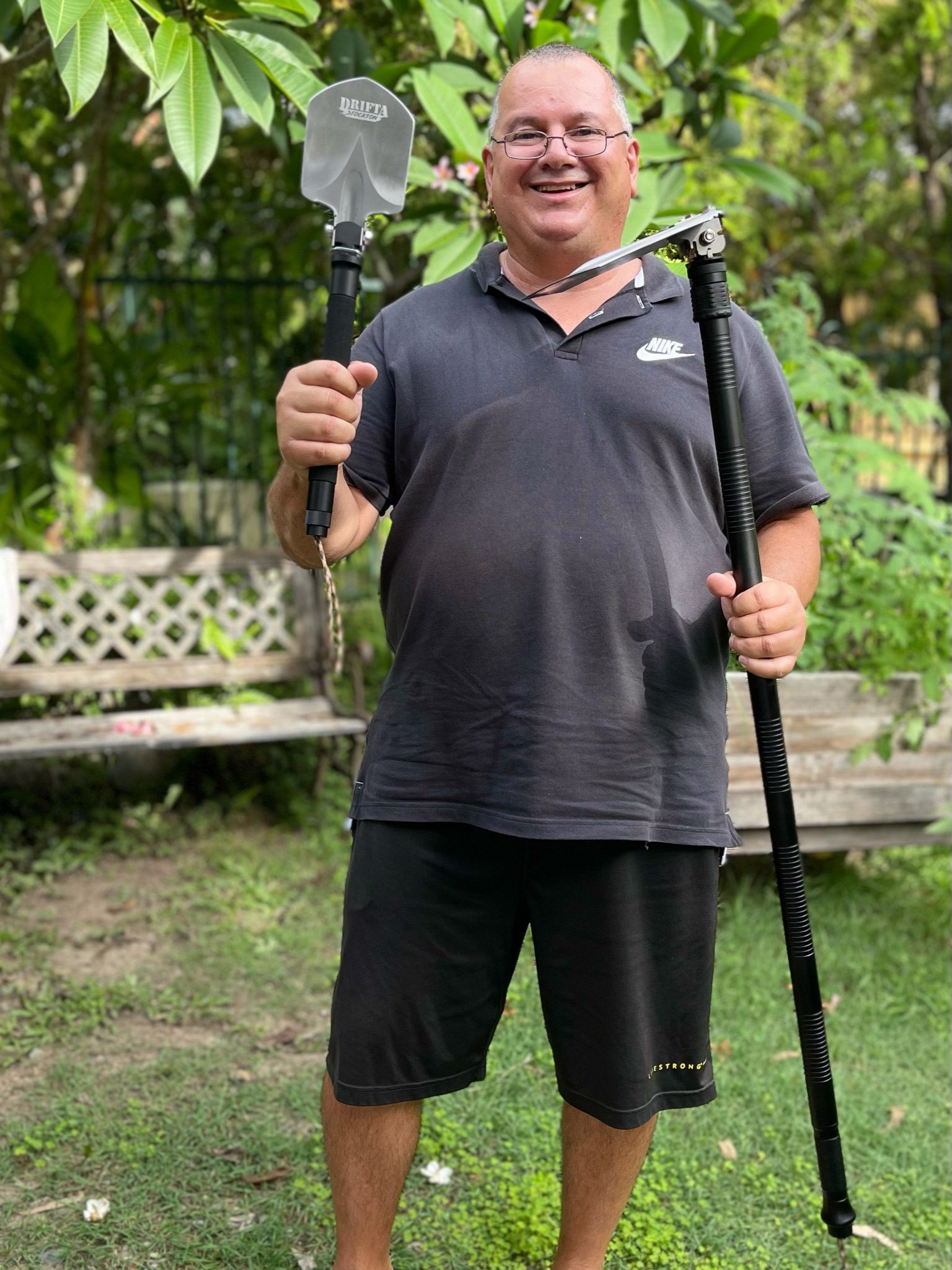30 mm aluminium tube, stainless head. Dunny shovel has a soft grip.