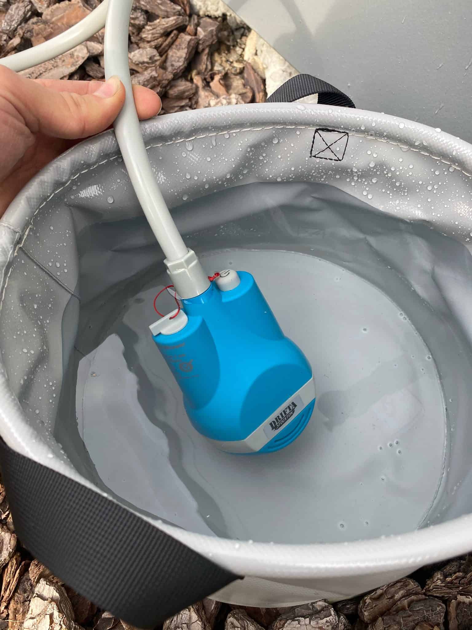 The battery powering the water pump is 2200mAh. Easy and quick to recharge via USB in about 2-5 hours. When max battery power you can run the pump for about 1 hour.