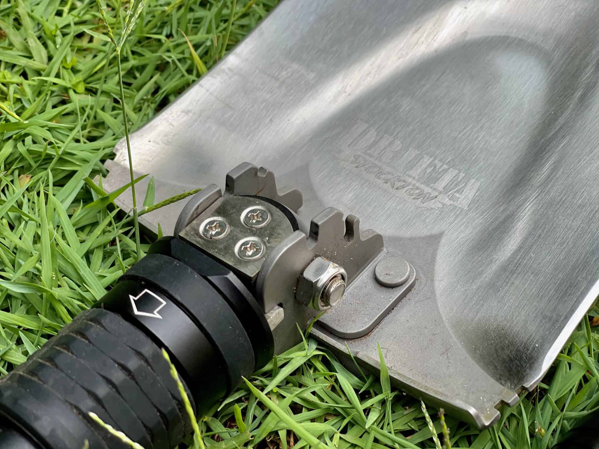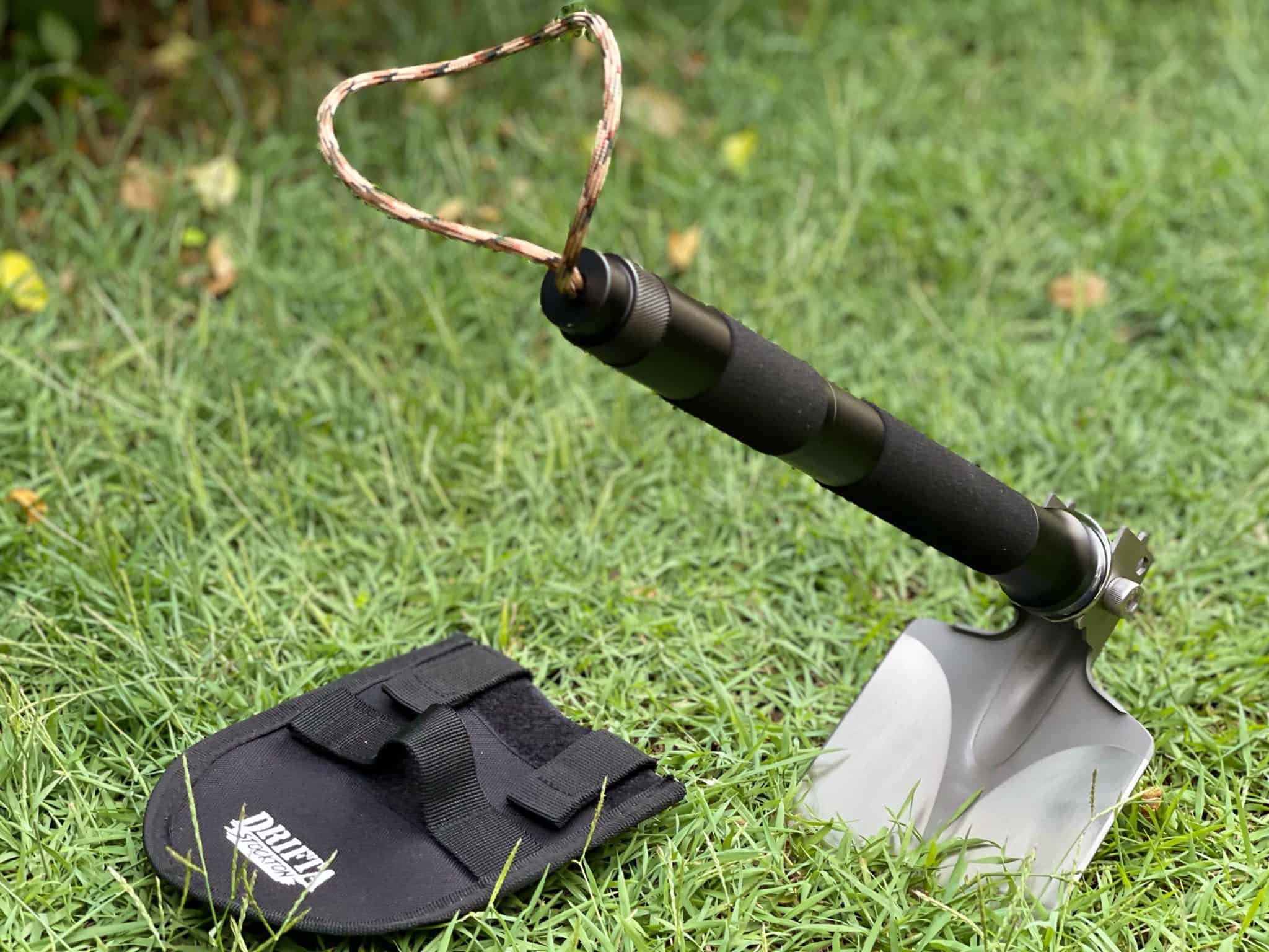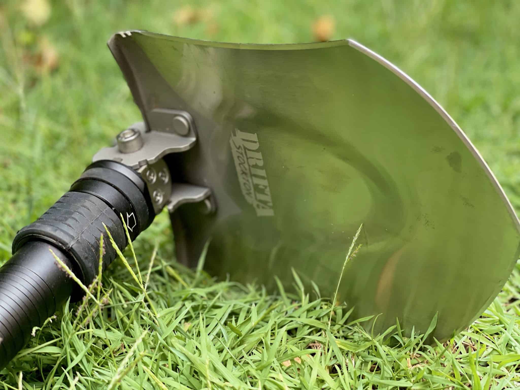 Small shovel – can be taken apart into 2 parts so max length is 220mm. Once put together and the blade is folded down the length is 320mm. Unfolded total length is 500mm. Blade cover included.