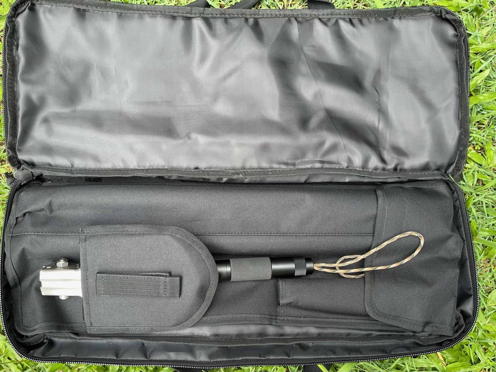 Storage bag size is 520x200x30mm. Shovel blade cover is included as well.
