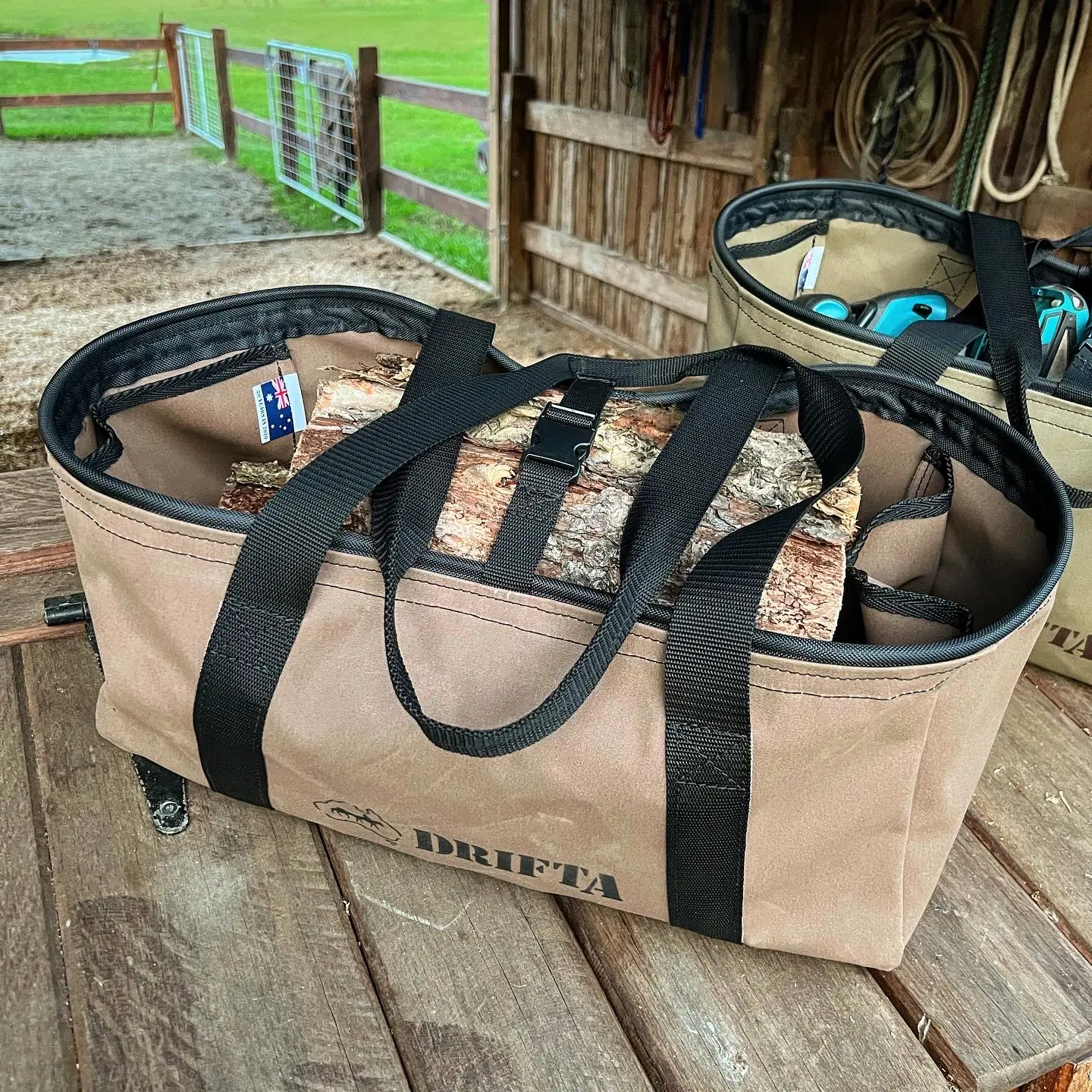 The super tough open top heavy duty bag for heavy gear. Very strong 12Oz canvas. Ply base makes the bag very strong. Two internal side pockets. Top buckle.